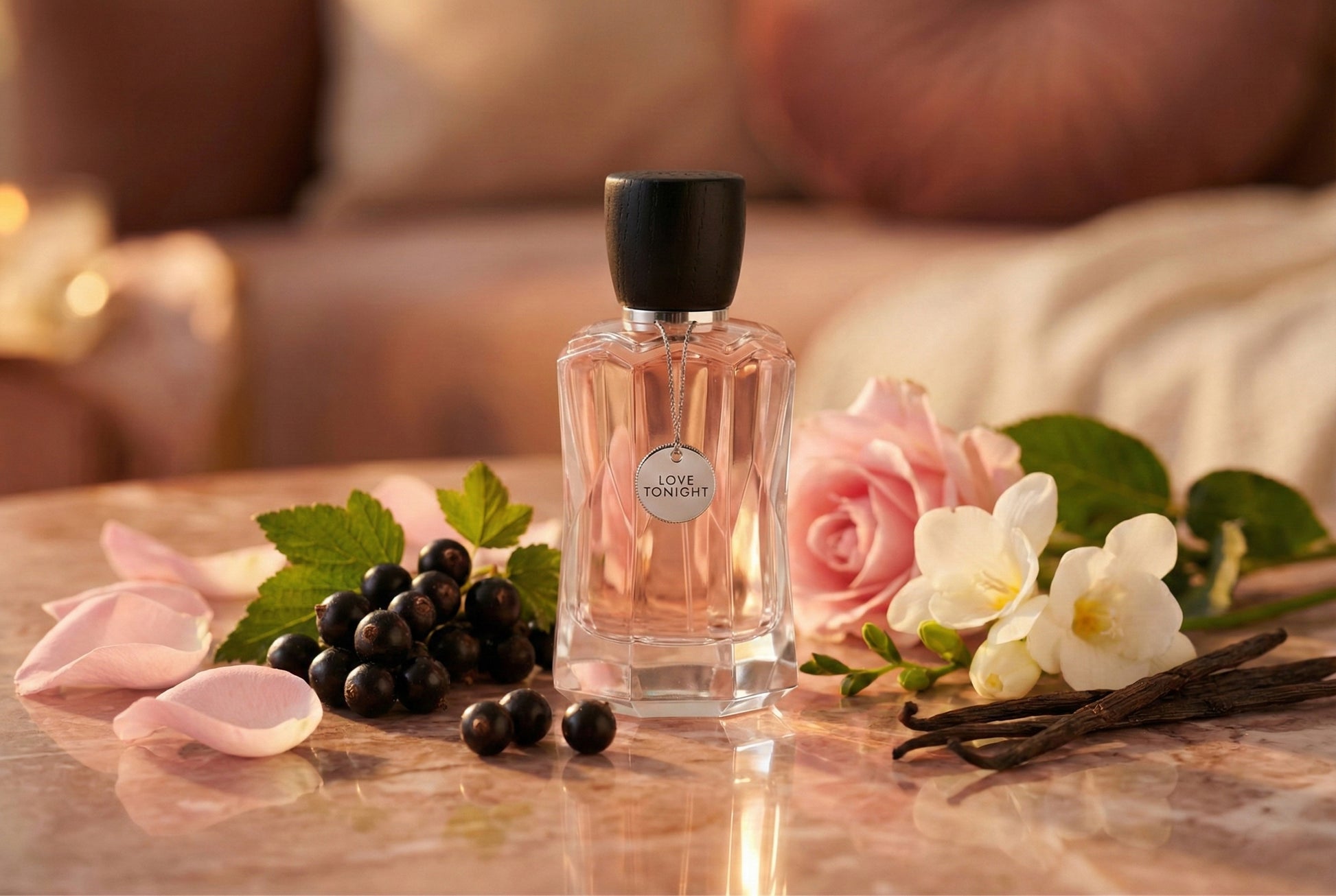 LOVE TONIGHT is a modern floral-amber fragrance that embodies the duality of the bold woman.