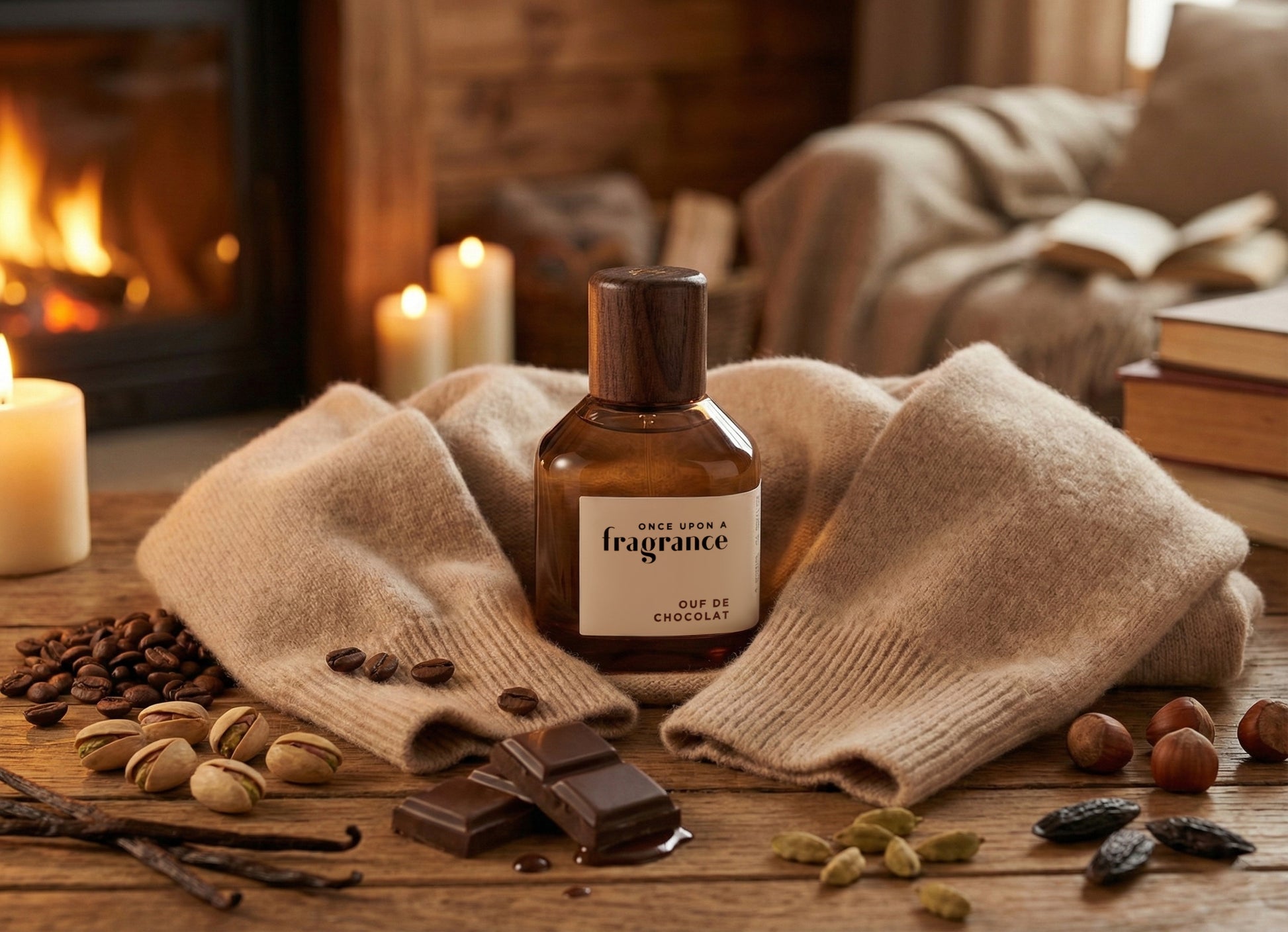 A comforting fragrance, as warm and enveloping as a cashmere sweater. Coffee, pistachio, and praline open with irresistible sweetness, followed by a melting heart of chocolate, vanilla, and a touch of cardamom. In the base, caramel, tonka bean, and amberwood leave a gourmand, velvety, and unforgettable caress on the skin.